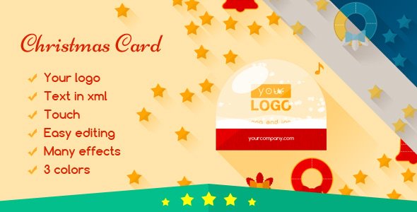 The beauty of the flat design with elegant Christmas elements. All this in a beautiful snow globe! The card has effects of snow and move, and you can edit all the text through the xml. And you can select the font from Fonts Google.