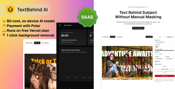 - Tags ai graphic design tool, ai text behind image, automatic background removal, codecanyon saas, image text placement, local ai image tool, next.js boilerplate, next.js saas, photo text layering, saas image editor, tailwind css, text behind subject app